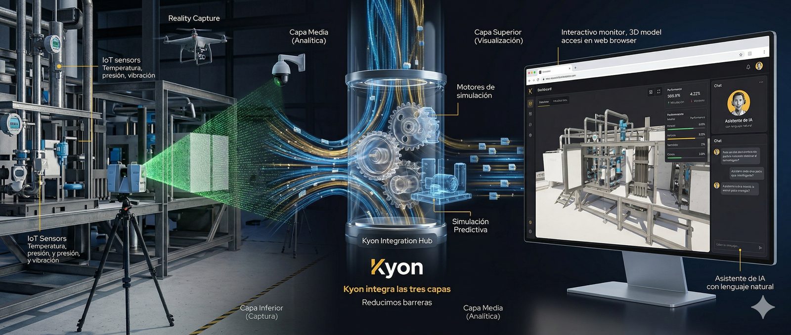 IoT + Reality Capture (video, 3D capture, LiDAR, sensores) alimentando todo el sistema.